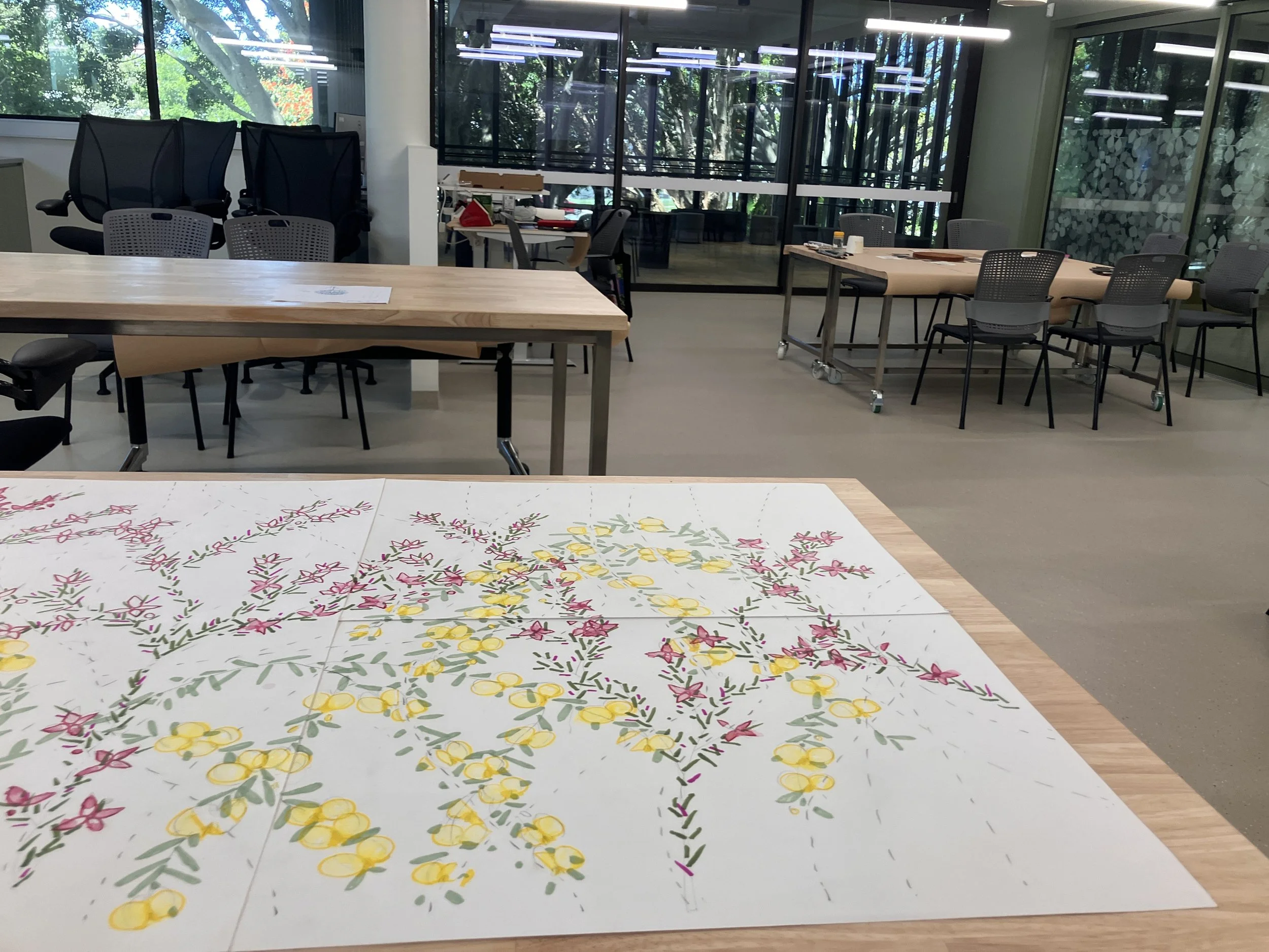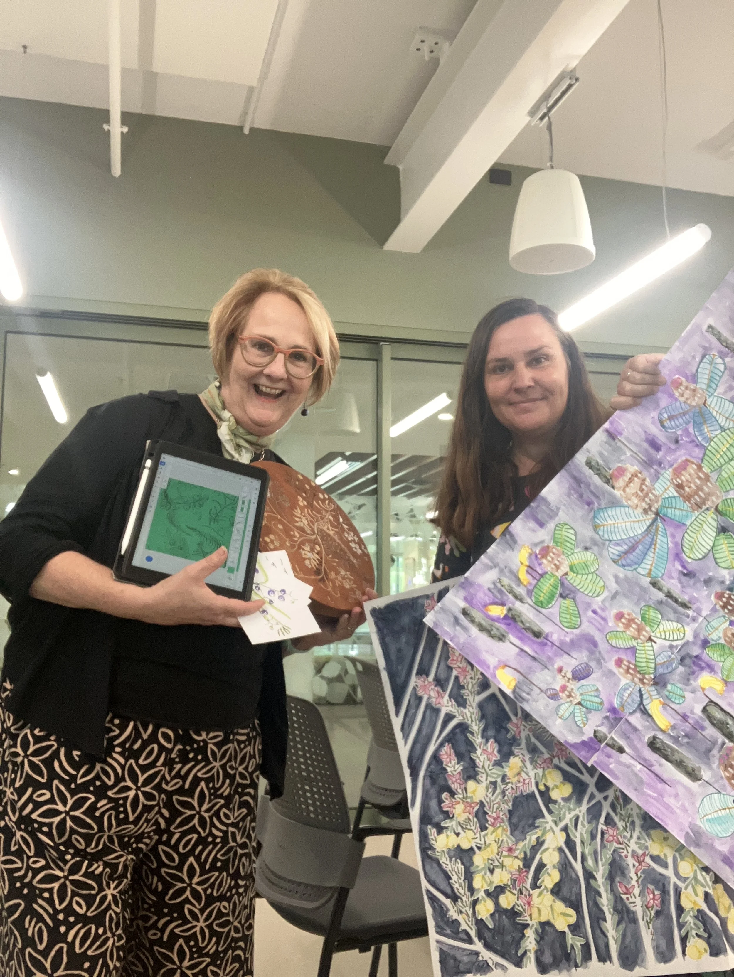 This week Dr Sue Davis OAM, Aunty Hope O’Chin, and I were very lucky to have access to the new Maker Space at the Sunshine Coast Library in Caloundra. The project was the first of three weeks responding to the Wildflowering by Design exhibition currently on at the Caloundra Regional Gallery.